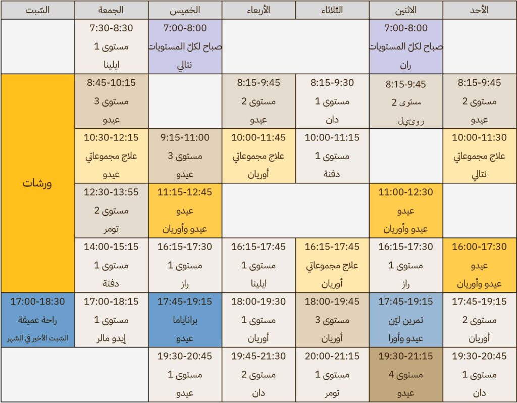 إليكم نموذج عام لجدول السّاعات، تواصلوا معنا لترتيب قدومكم لدرس أوّل.