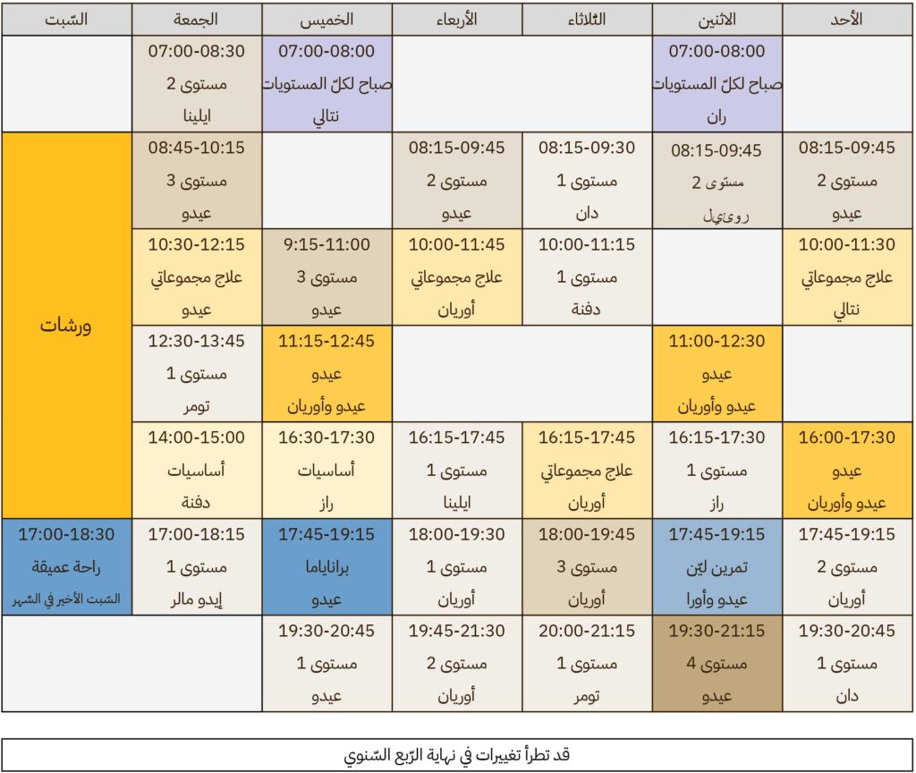 إليكم نموذج عام لجدول السّاعات، تواصلوا معنا لترتيب قدومكم لدرس أوّل.